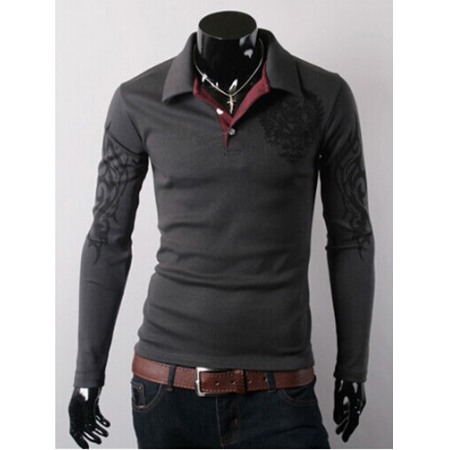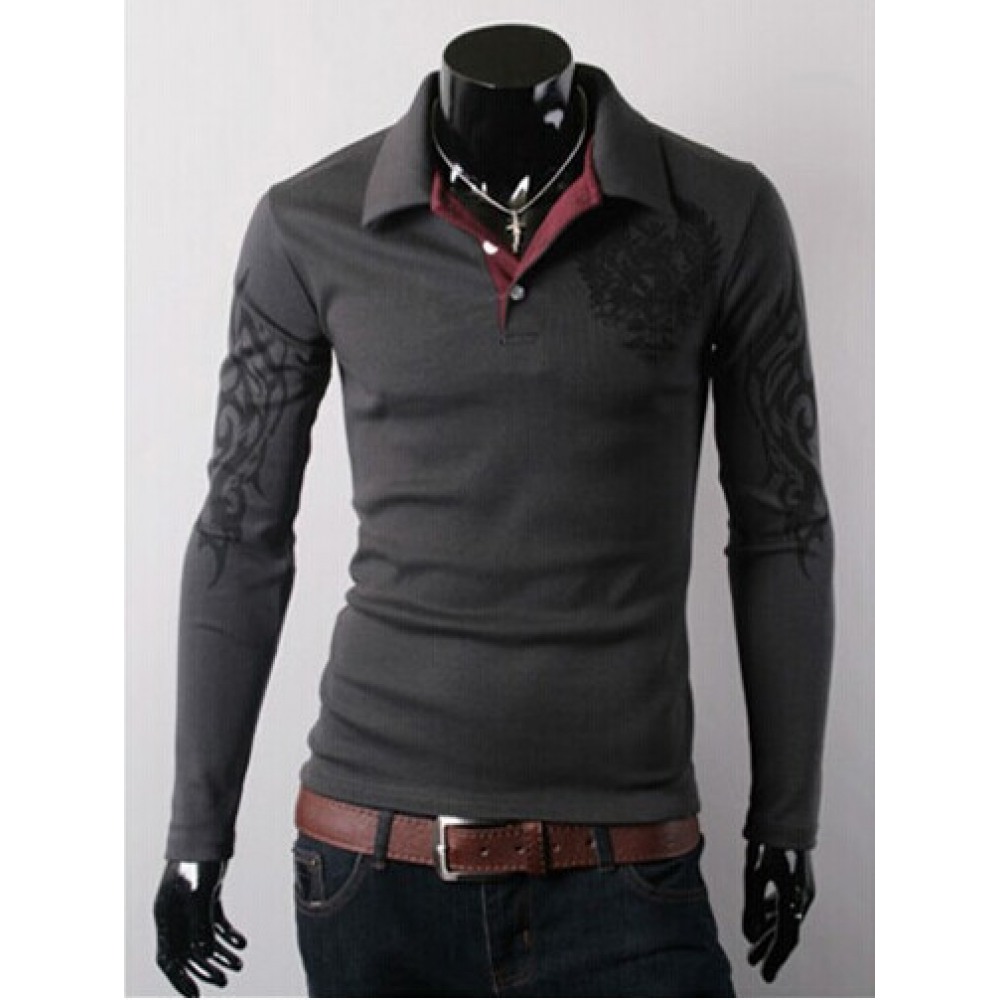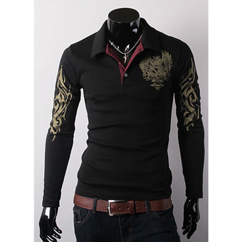 Men's Long-Sleeved T-Shirt Lapel Big Eagle Printing Casual Men's Clothing