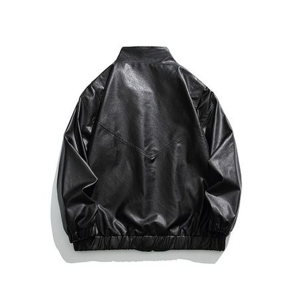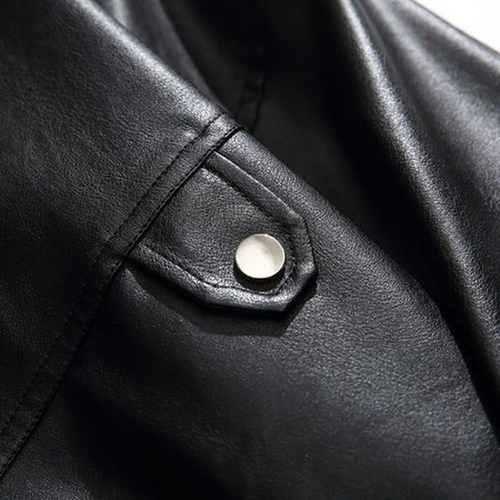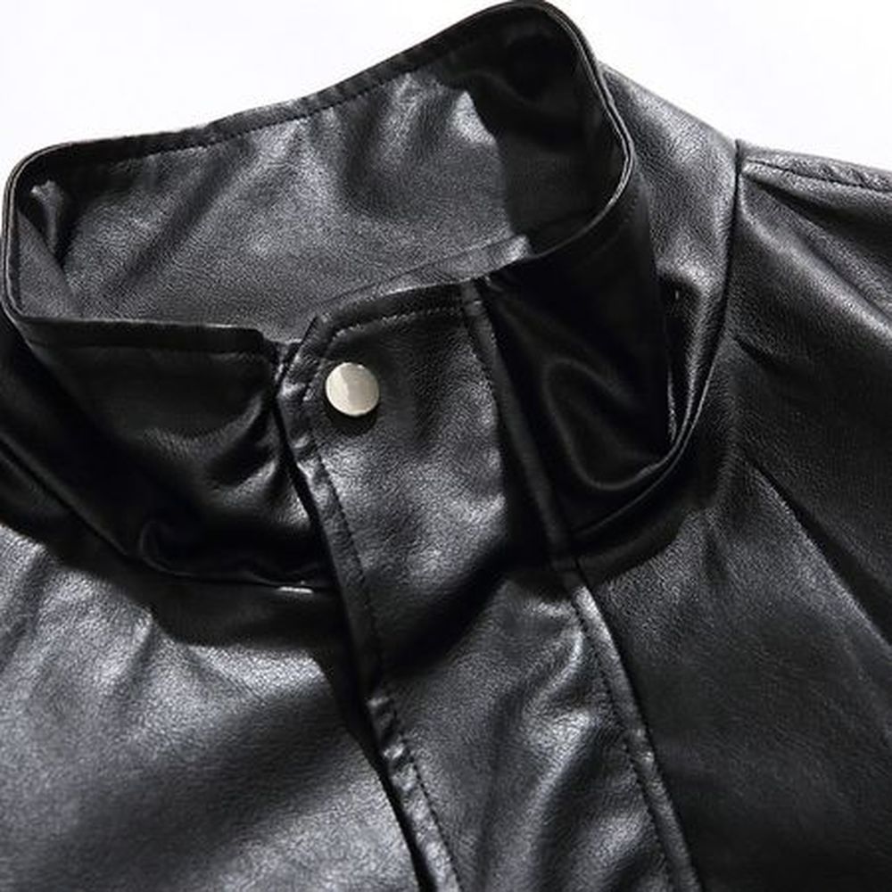 Men's Waterproof Leather Motorcycle Jacket With Stand Collar