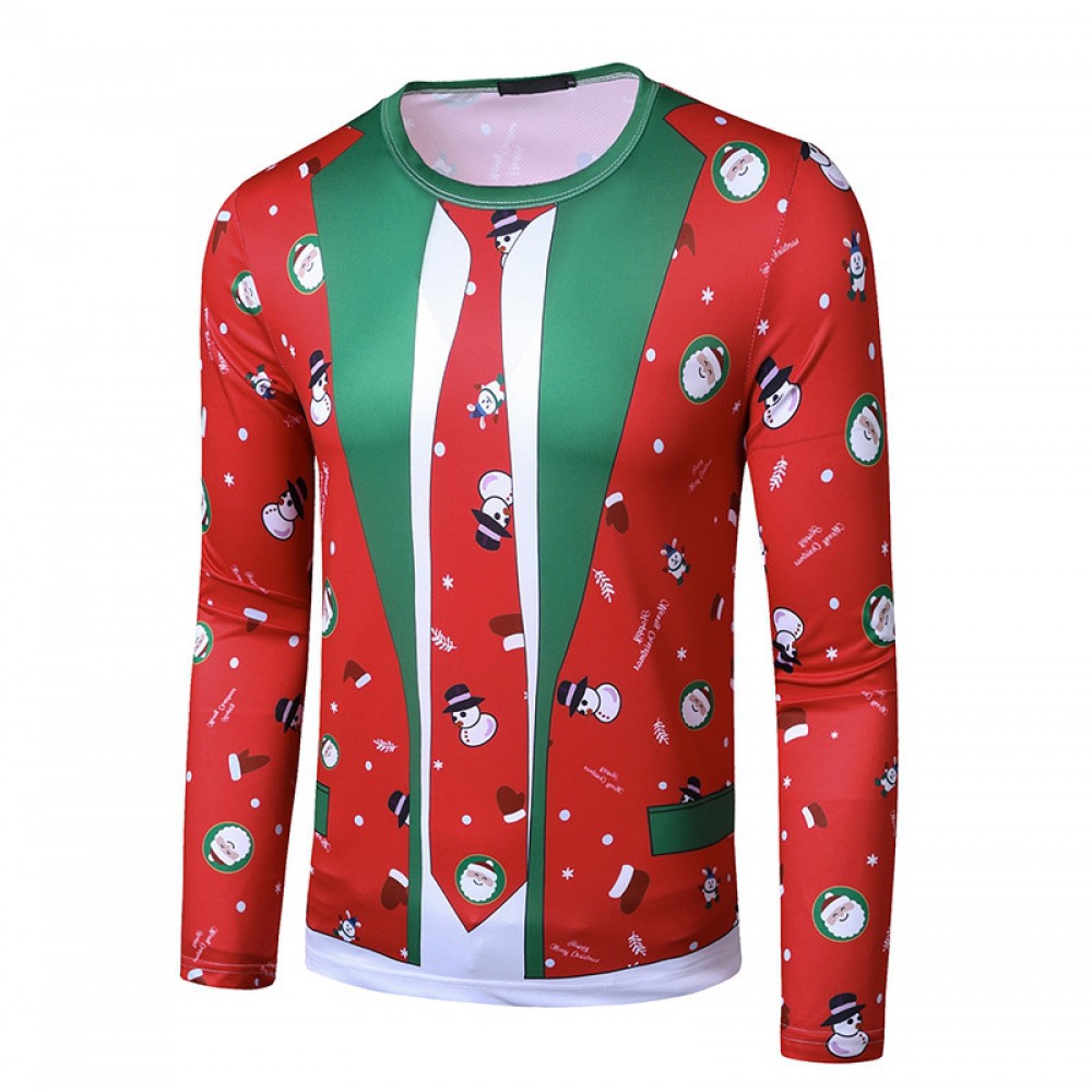 New 3D Personality Printing Fashion Men's Christmas Long-Sleeved T-Shirt