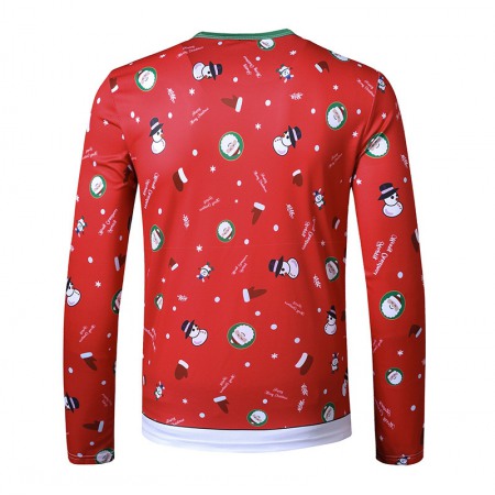 New 3D Personality Printing Fashion Men's Christmas Button Pattern Long-Sleeved T-Shirt